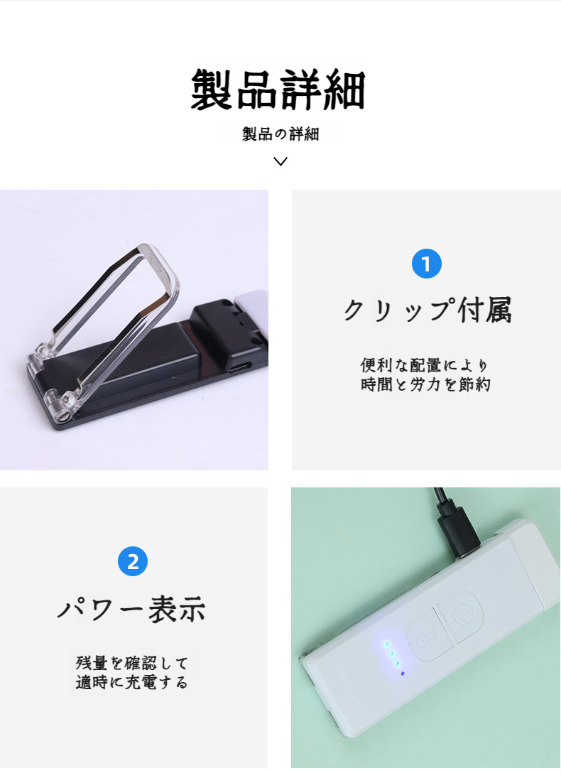 ポータブルクリップUsb充電式ナイトライト ミニ・ポータブル・カード・ライト 読書アイ・クリップ・ランプ デスクランプ ブックランプ