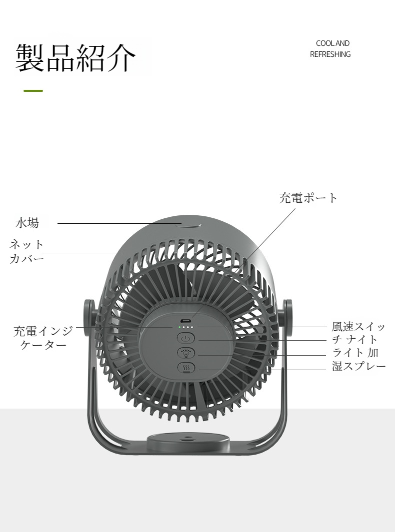 蚊取り式加湿吊り下げ扇風機 循環式加湿卓上オフィスファン ナイトライトとUsbファン付き加湿ファン